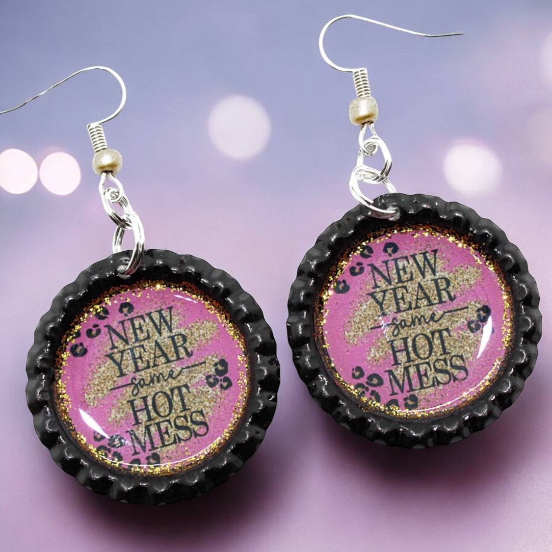 Funny Quote Bottle Cap Earrings – “I’ll Quit Drinking If You Quit Talking”