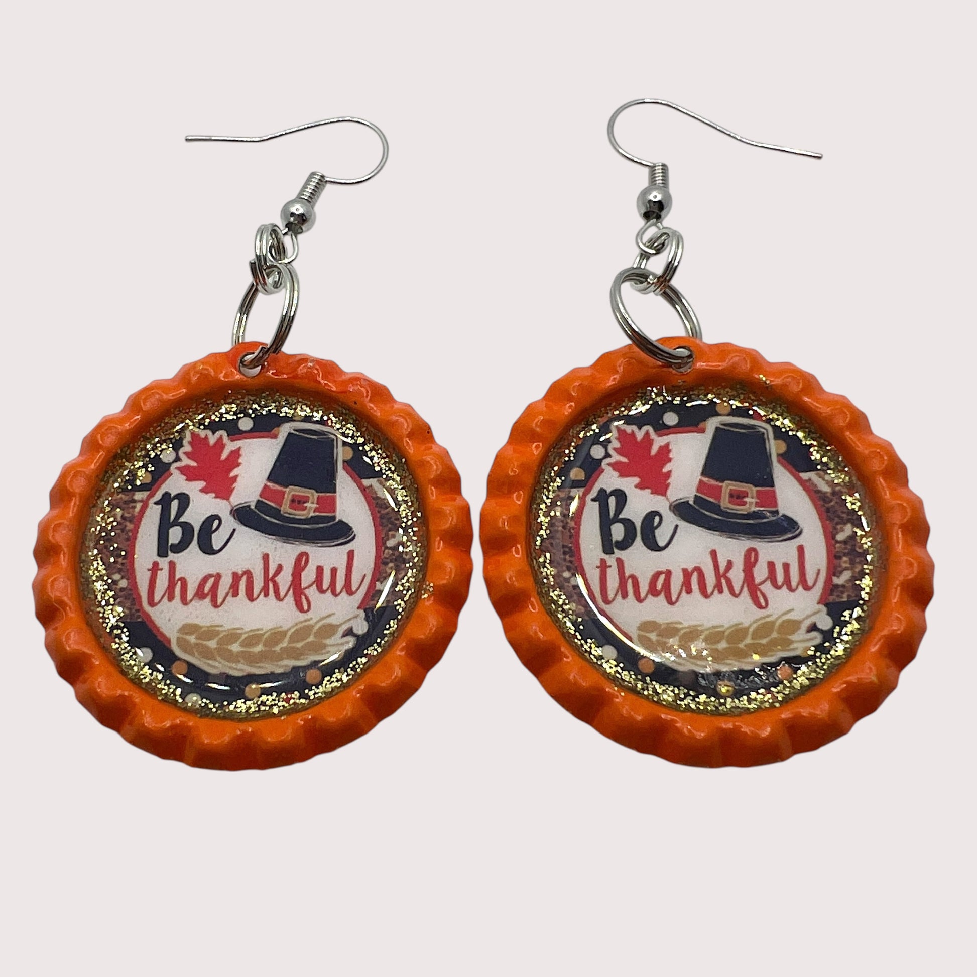 Celebrate gratitude and fall vibes with these handmade “Be Thankful” bottle cap earrings — a cheerful accessory for Thanksgiving season!