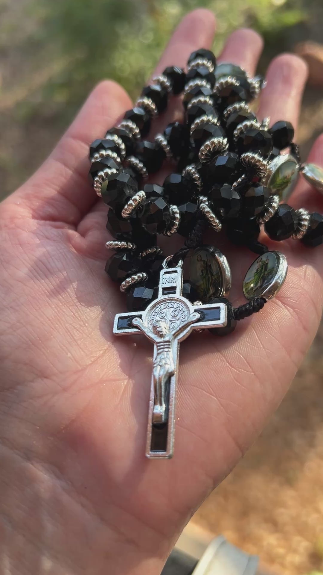St. Jude Rosary – 19” Black Faceted Beads with Silver Crucifix